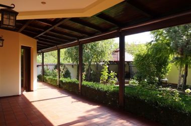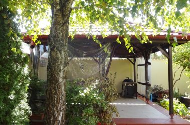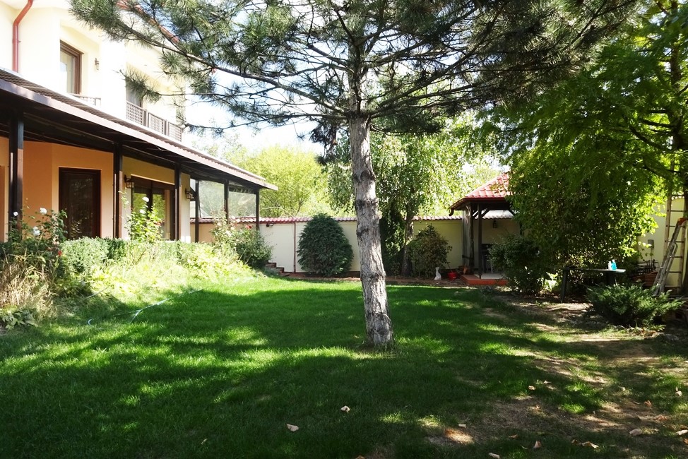 Gradina este amenajata cu foisor, instalatie de irigare automata, alei amenajate iluminate, gard din beton si lemn.