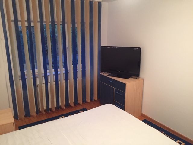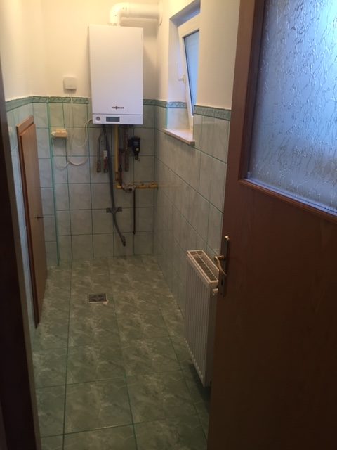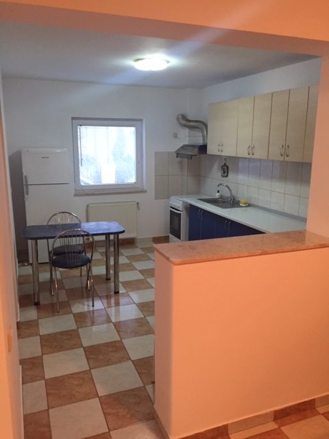 radiatoare tabla otel, aer conditionat, usa metalica, bucatarie deschisa mobilata( frigider,
