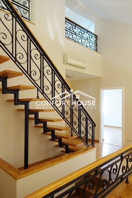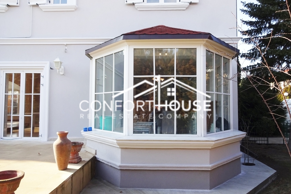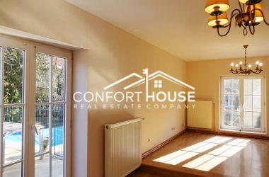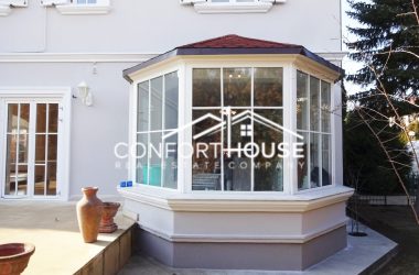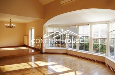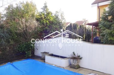 Finisaje si dotari: tamplarie P.V.C. cu geam termopan, obloane(P.V.C), plase insecte, parchet, mocheta, faianta, gresie, radiatoare tabla otel, aer conditionat, semineu(doua), usa metalica, telecomanda garaj, telecomanda poarte acces, piscina exterioara incalzita, centrala termica, bucatarie mobilata si echipata, bai mobilate, corpuri de iluminat, ferestre de mansarda Velux, gradina amenajata( fantana arteziana, instalatie irigare automata, casuta unelte gradina, barbeque).