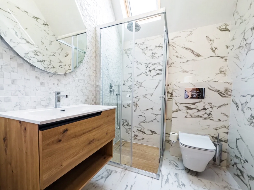 Finisaje: Gresie, Faianta, Parchet masiv, Geamuri termoizolante - PVC, Calorifere aluminiu, Aplice, Lustre