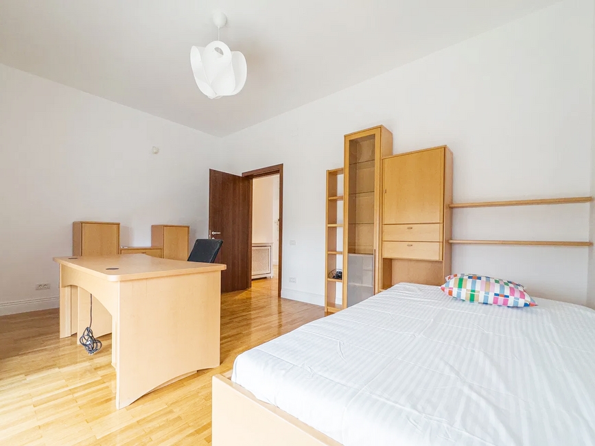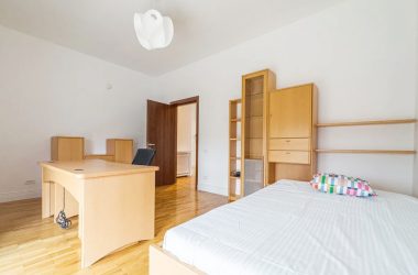 Etaj: dormitor matrimonial cu baie proprie si balcon, un living foarte spațios cu zona de lucru si baie proprie, ce poate fi transformat si in apartament matrimonial, trei dormitoare secundare deservite de o baie;