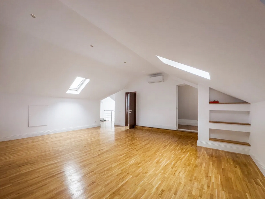 Mansardă:  open-space  generos, un dormitor și o baie.