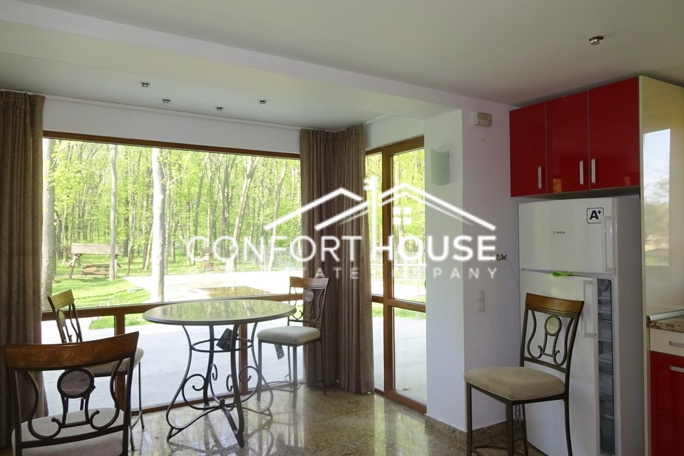 Finisaje si dotari: tamplarie P.V.C. cu geam termopan, radiatoare aluminiu, parchet, faianta, gresie, incalzire in pardoseala, centrala termica, aer conditionat, alarma(camere video), doua seminee, garaj dublu cu telecomanda, jacuzzi, piscina incalzita, sauna finlandeza, retea P.C., T.V., cablu, gradina amenajata, bucatarie mobilata, barbeque.